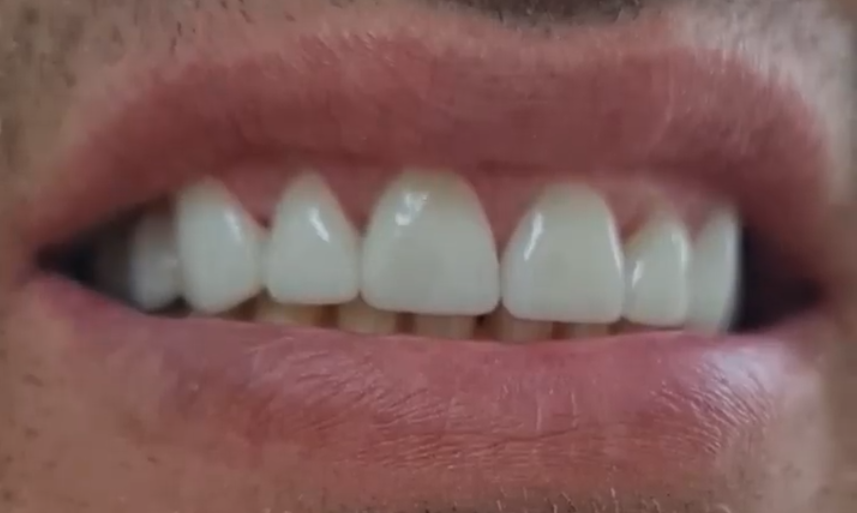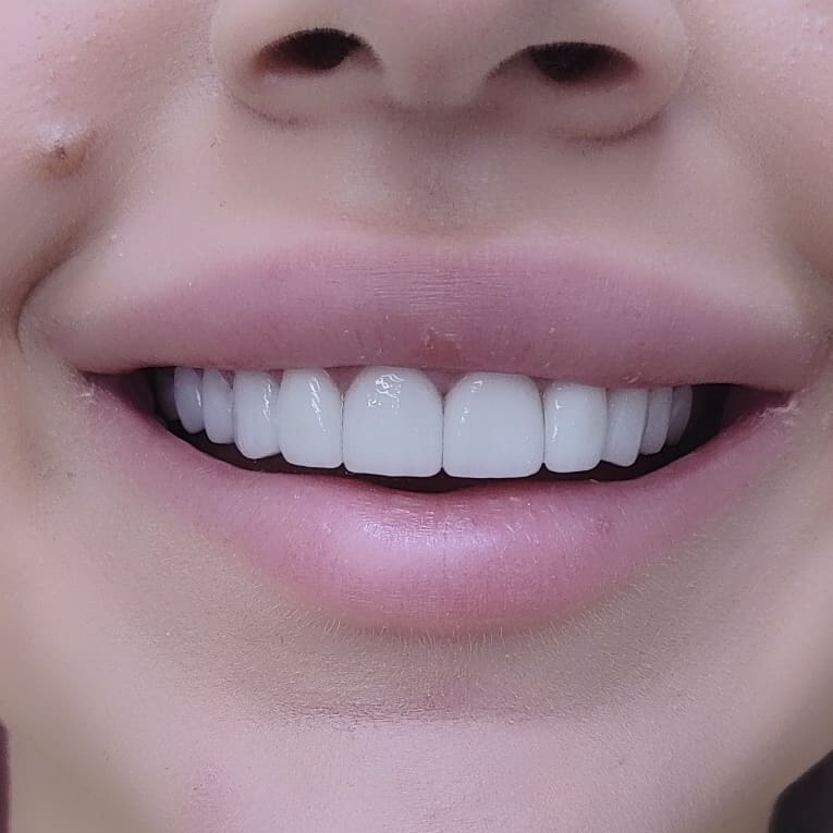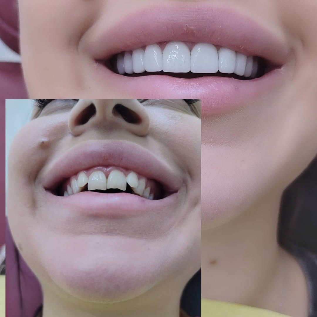 Керамические виниры цвета bleach 1 - до установки Керамические виниры цвета bleach 1 - после установки